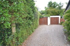 At Side: Two large double garages with power and lighting, gravelled driveway