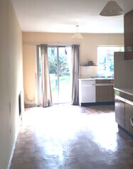 Having built-in wall and floor presses with counter tops, double drainer stainless steel sink, electric cooker, washing machine, extractor fan, sliding doors to rear garden, numerous powerpoints.
