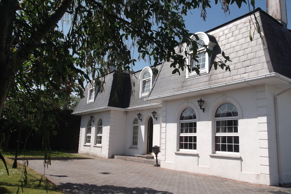 Deauville’s on pretty private grounds of one-fifth of an acre in the middle of Church Road, opposite the Rockies GAA heartland with modern clubhouse and pitches, and there are public parks and walks nearby, as well as a tennis club.