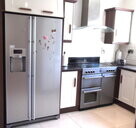L-shaped. Having ceramic tiled floor, fully fitted Kitchen with Belling ‘Classic’ electric hob and oven, extractor hood, fitted presses, cabinets and drawers, single drainer stainless steel sink, integrated dishwasher, tiled splashback, numerous powerpoints. Samsung fridge freezer. TV point.