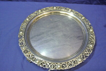 Large Irish Silver round tray or server by Royal Irish Silver Ltd,